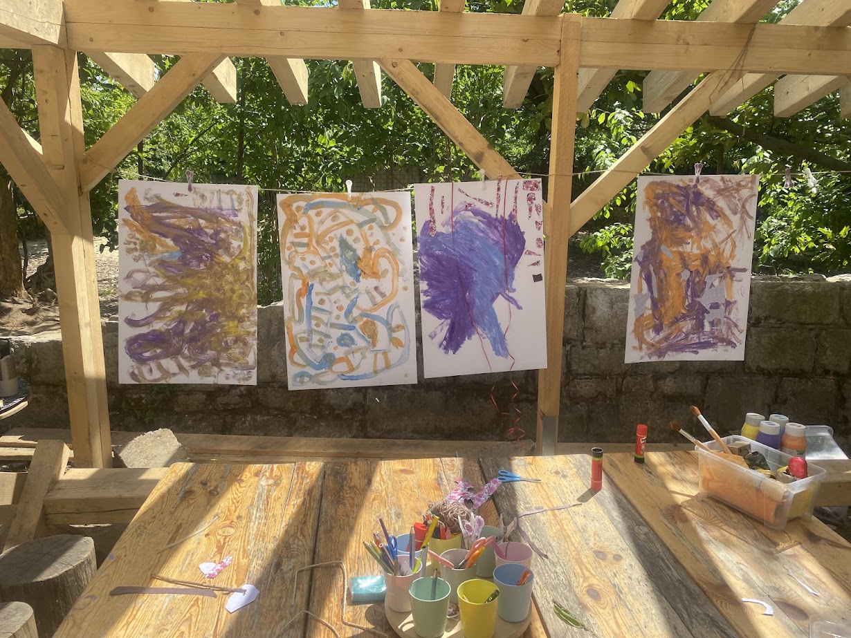 Auch auf unserem Gelände haben die Kinder Raum, um sich auszuprobieren – beim Werken mit Werkzeugen, beim Rennen, Rutschen oder einfach beim Draußensein. Bewegung ist bei uns kein gesondertes Angebot, sondern Teil des täglichen Miteinanders – beim Spielen, beim Aufbruch in den Wald oder beim Bauen mit Naturmaterialien.