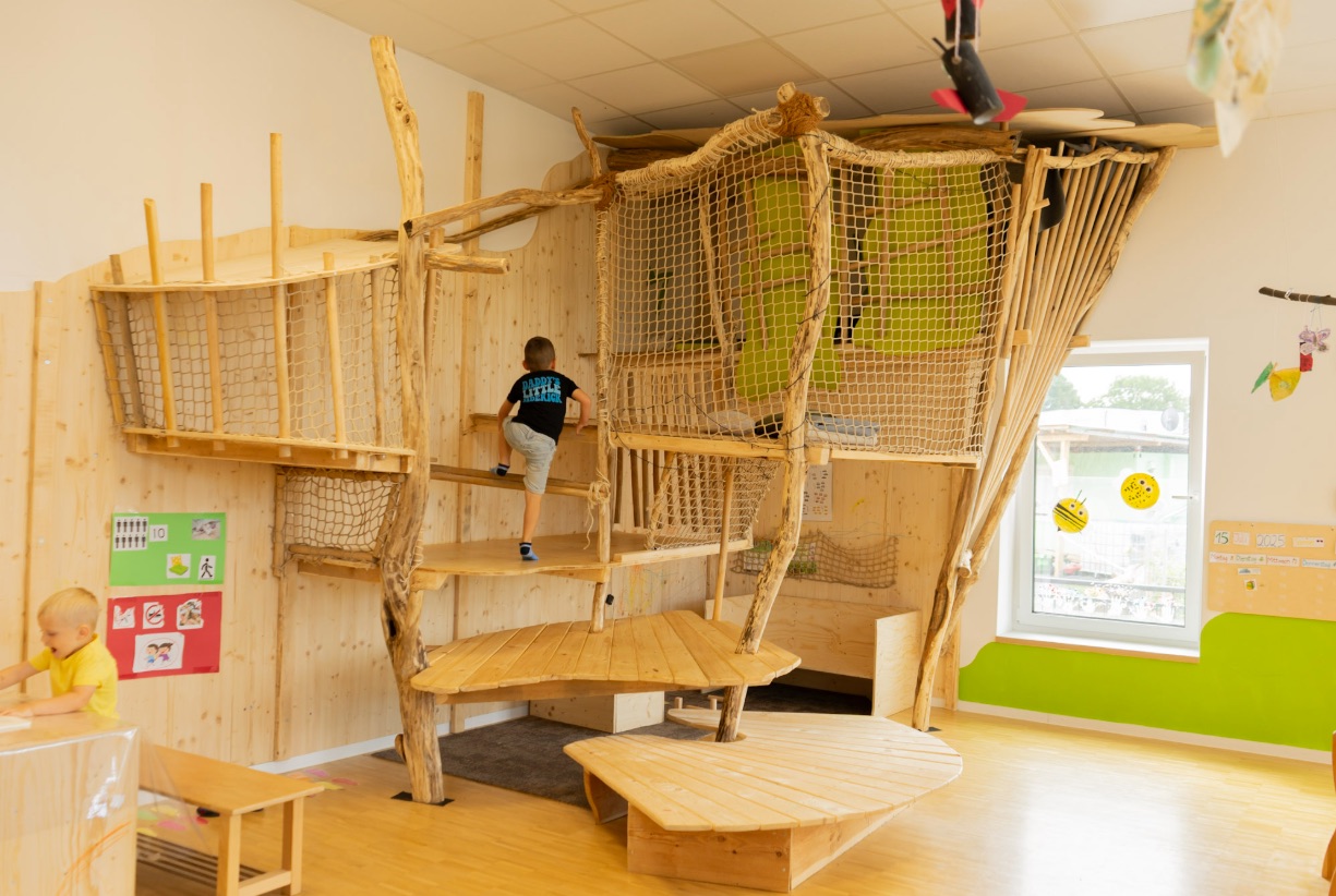 Wir begleiten die Kinder dabei aufmerksam und bestärkend. Sie erleben sich als kompetent, lernen ihre eigenen Grenzen kennen, üben das Einschätzen von Risiken und wachsen auch im sozialen Miteinander. Bewegung stärkt nicht nur den Körper, sondern auch das Selbstvertrauen – und schafft Verbindung zwischen dem eigenen Tun und der Gemeinschaft.