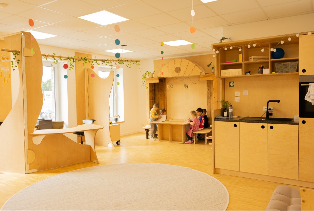 Unser teiloffenes Konzept ermöglicht es den Kindern, in ihren Stammgruppen feste Bezugspersonen zu haben und gleichzeitig die Vorteile des offenen Spiels zu genießen. Die Gruppenräume Löön & Böken sind durch eine modulare Bauweise flexibel anpassbar, so dass wir unsere Umgebung immer wieder neu gestalten und auf die Bedürfnisse der Kinder abstimmen können.